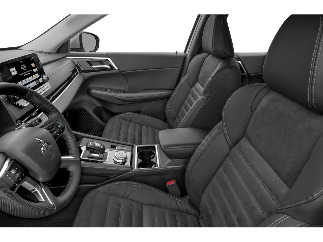 - Radio: AM/FM 9.0" Navigation w/Smartphone Link -inc: 6 speakers, Apple CarPlay, Google Android Auto, SXM all-access and SXM traffic and travel link w/90-day subscription, Mitsubishi Connect, HD Radio, Bluetooth® wireless technology, steering wheel controls for phone, audio and voice recognition and USB ports